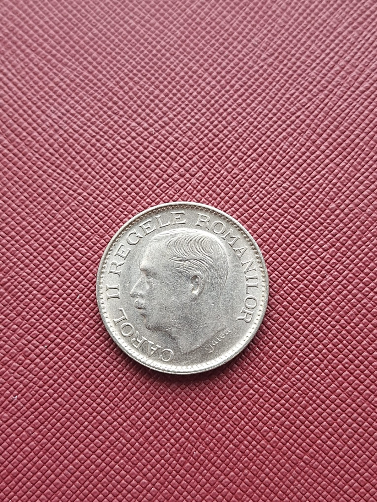 | Descriere revers | Inscripţia- CAROL- II- REGELE -ROMANILOR - şi efigia regelui Carol al II lea orientata spre stînga, cerc perlat exterior. Sub gît este scris numele gravorului, I. Jalea. |