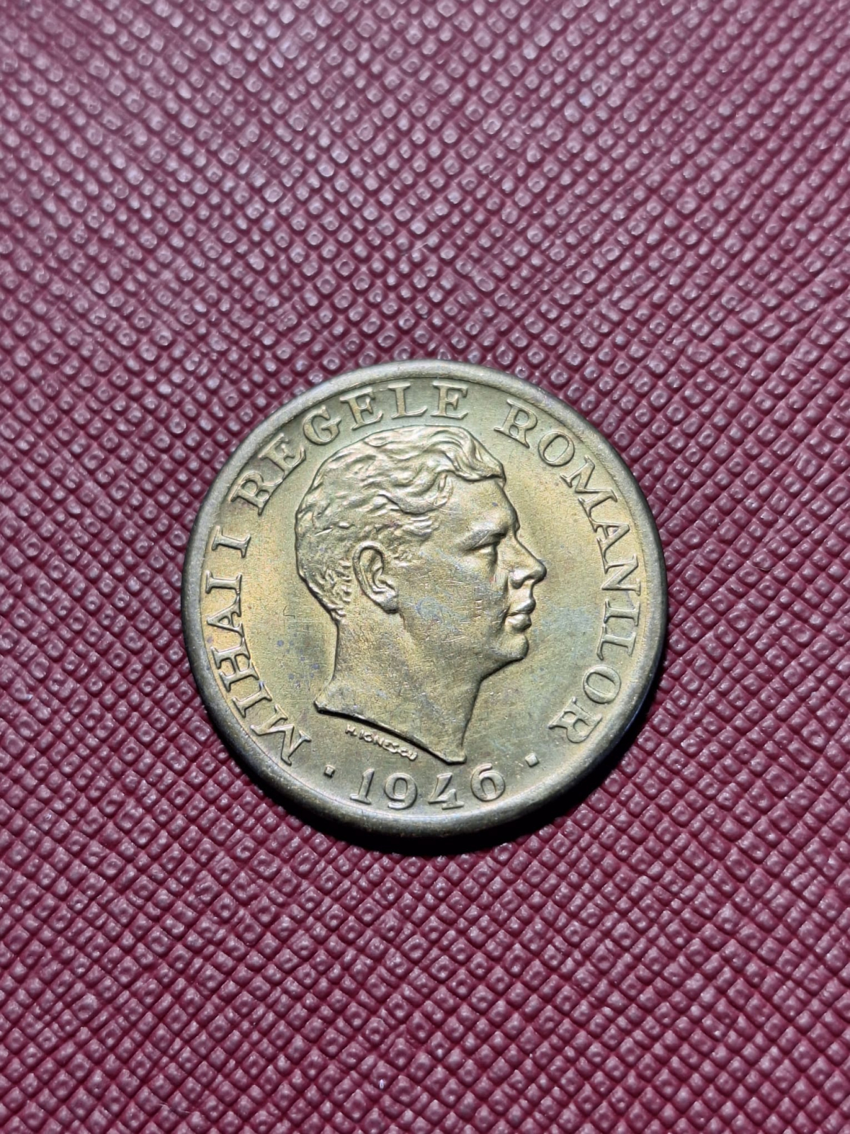 Descriere revers inscripţia MIHAI I REGELE ROMANILOR, efigia regelui spre dreapta şi anul 1946 încadrat de două semne pătrate. Sub gît este scris numele gravorului, H. IONESCU.