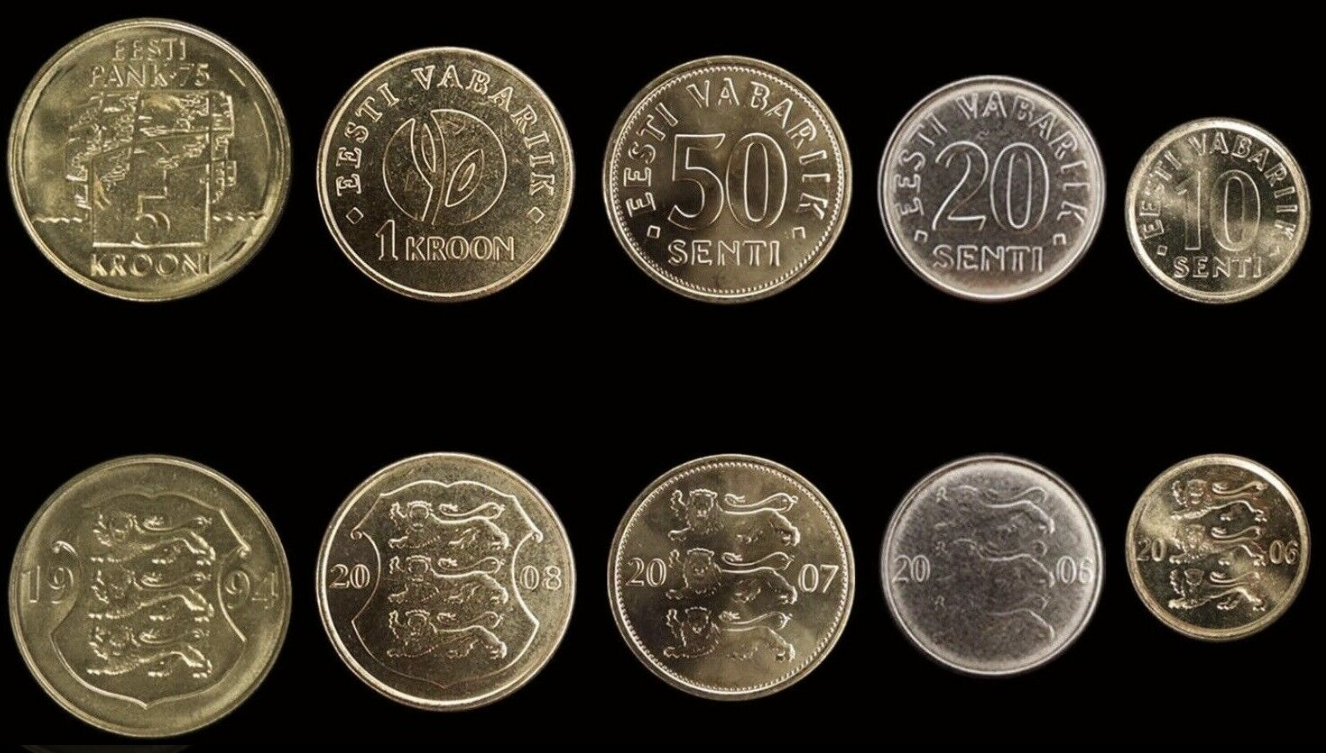 Estonia Set 5 Monede 1994-2008: 10 20 50 Senti, 1, 5 Kroon, Unc
