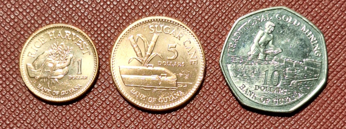 Guyana set 3 monede 2007-2008: 1,5,10 Dolari, UNC, resurse: orez, trestie de zahar si aur