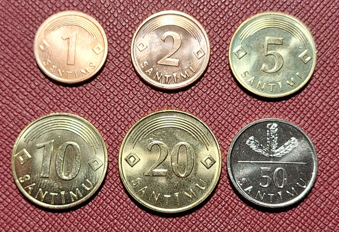 Letonia 6 monede set 2008-2009: 1,2,5,10,20,50 Santimi, UNC