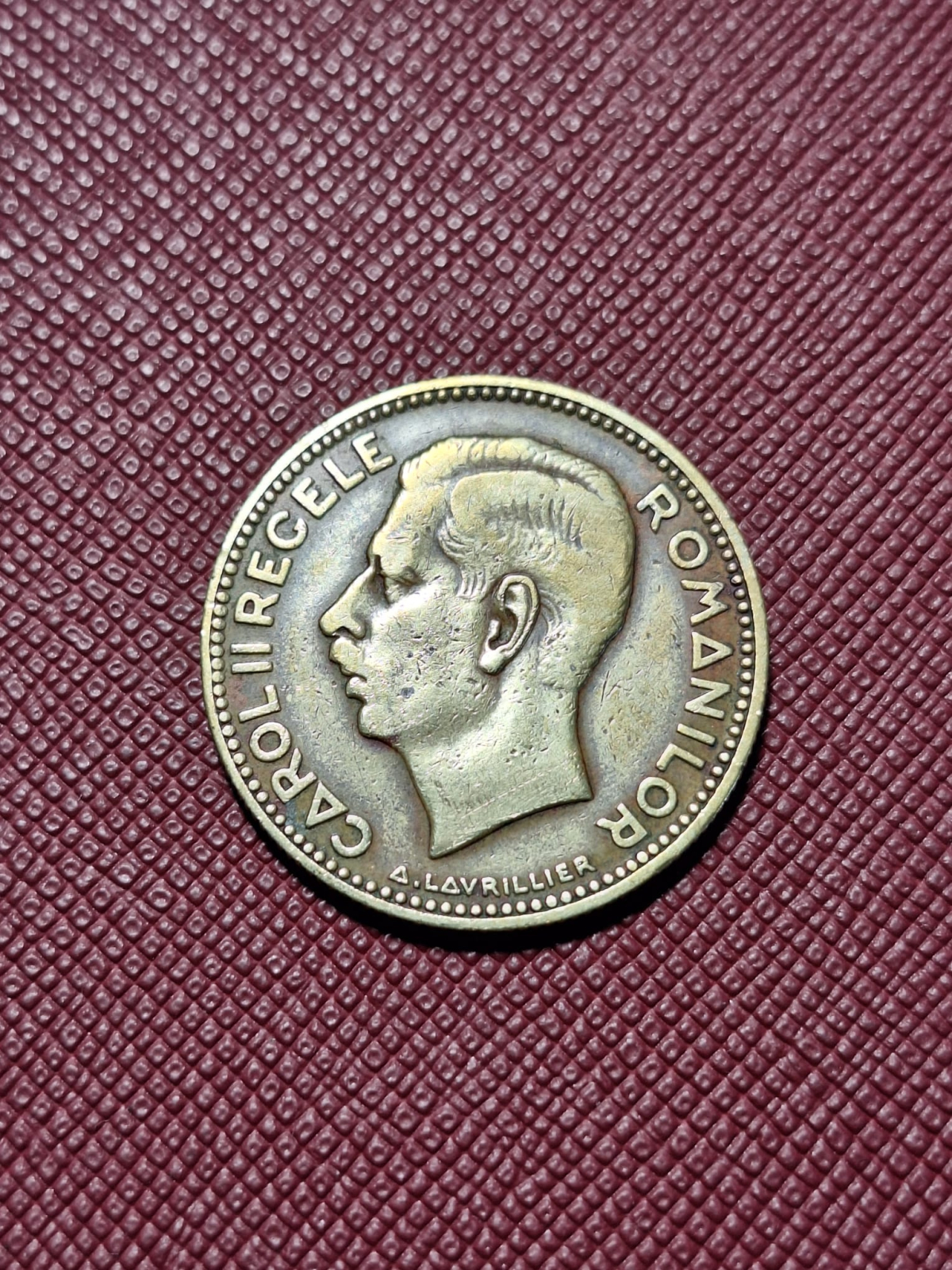 | Descriere revers | Inscripţia CAROL II REGELE ROMANILOR şi efigia regelui privind spre stânga, cerc perlat exterior. Sub gât este scris numele gravorului, A. LAVRILLIER.. |
