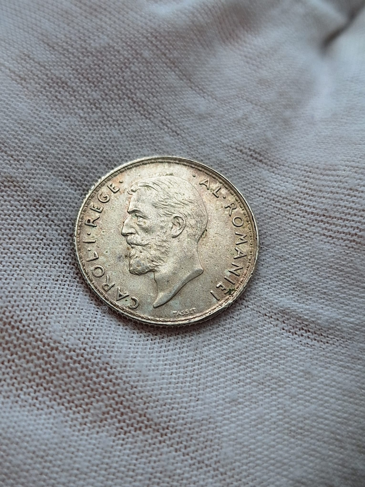 Romania, Regat, 1 Leu 1914, Regele Carol I, cu luciu de batere, rara