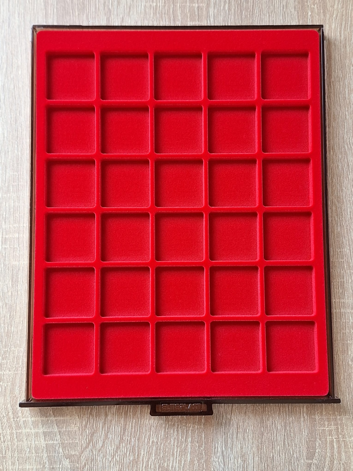 Tavita expunere si stocare monede, 30 spatii patrate x 38 MM