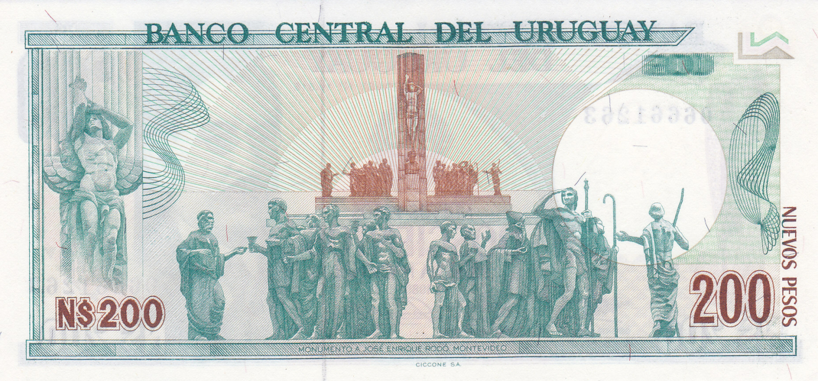 Uruguay 200 Nuevos Pesos 1986, José Enrique Rodo, necirculata